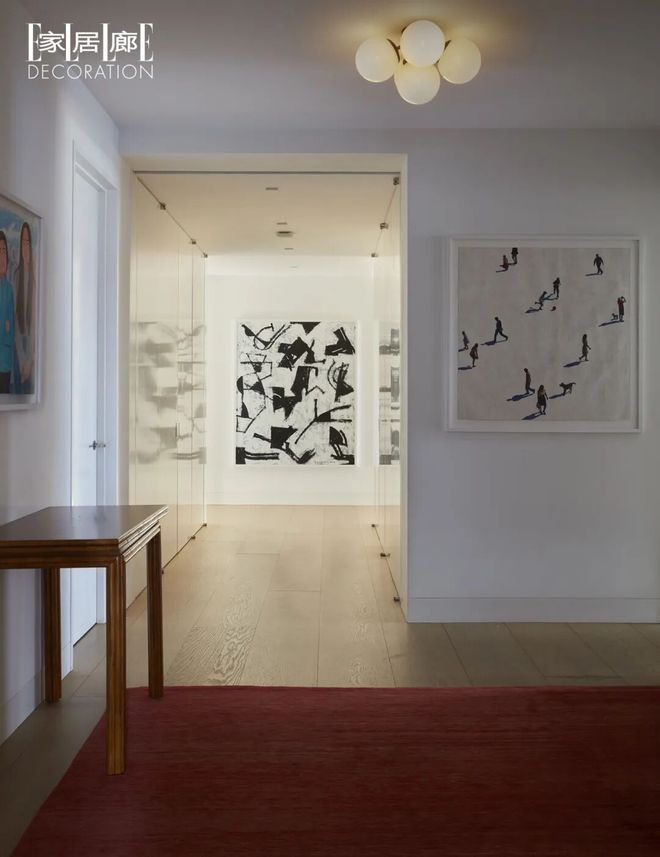 Dana一贯倾向于以建筑思维去构思空间,“空间是一个框架,所以色调很中性,墙壁是白色的,天花板是白色的,厨房和浴室的石材是灰色的,地板是宽幅欧洲橡木,宽木板减少了接缝,可以形成更为纯粹的水平表面。”室内陈设上,她与纽约Eric Alch设计事务所一起合作完成。整体上突出定制质感,且延续了由美国、欧洲和中国的不同文化和艺术元素组合形成的融合调性。