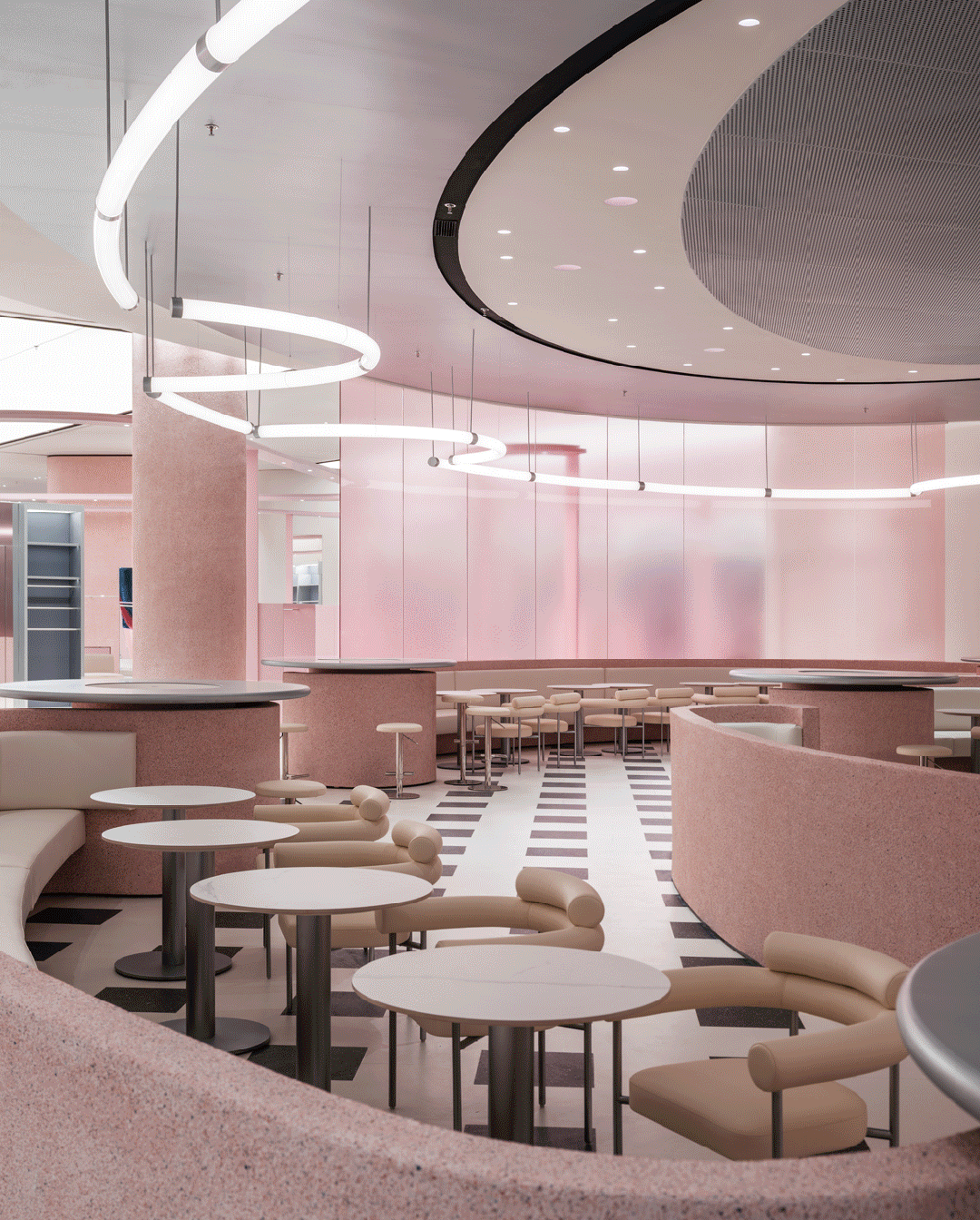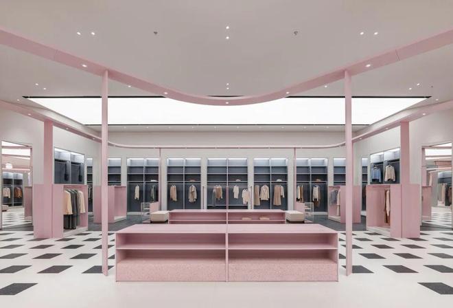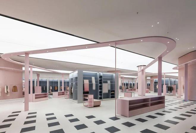 WAA未觉建筑为鄂尔多斯乐园店注入了以色彩与趣味为核心的设计,以一条连续的粉色丝带装置贯穿空间,兼具展示、照明与动线引导功能。购物区通过中央岛台与环形动线组织起超过4000件商品,背光膜天花营造柔和光环境,使服装始终成为视觉焦点。儿童展区则将游乐设施与零售功能结合,让购物体验超越消费本身,成为充满互动与愉悦的旅程。