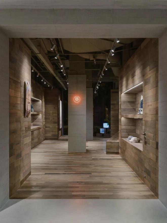 Studio Profile为泡泡玛特IP小野在上海打造的首个“家”,以回形混凝土结构营造庇护感,回收木材与木纹混凝土交织出坚硬与柔软的情绪。设计保留原始肌理,裸露天花与深邃墙体形成展陈与呼吸的平衡。空间动线由粗粝外壳过渡至温暖木质内核,药柜元素呼应疗愈意涵,让来访者在材质与时间中感受安抚与共鸣。