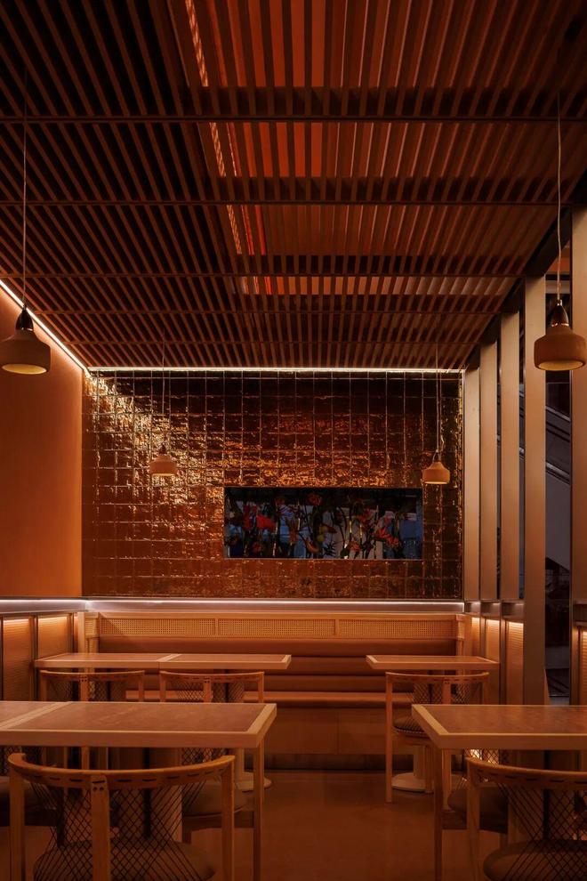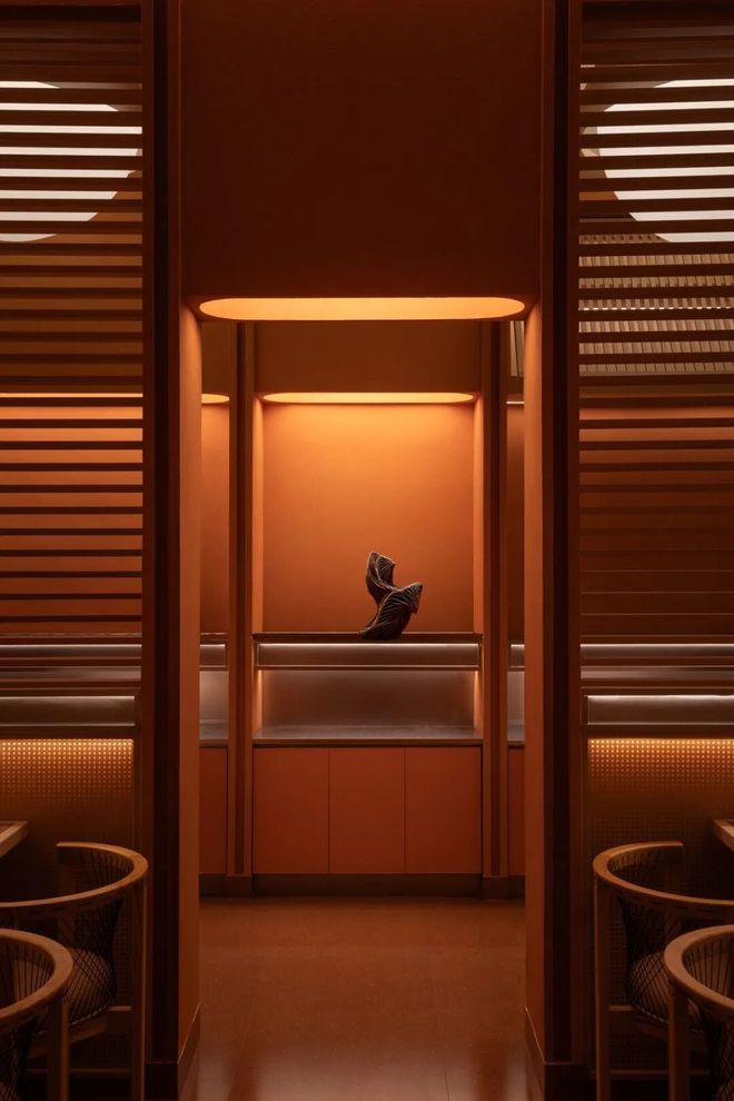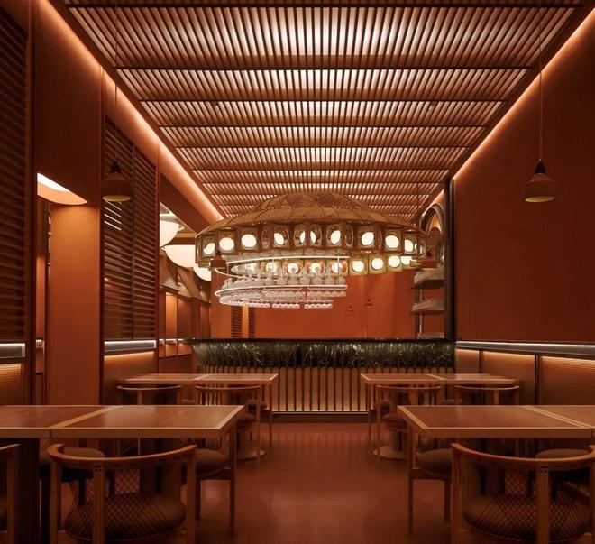 叠加OFFICE为上海火烧云餐厅打造的空间,以流动的火烧云意象为核心,通过色彩渐变、材质肌理与光影流动的融合,将天空云霞的瞬息变化转化为可感知的装饰语言。艺术装置与整体设计共同营造出从日出到日落的云端用餐意境,在保留火烧云温暖热烈文化内核的同时,构建出自然与人文共生的沉浸式用餐体验。