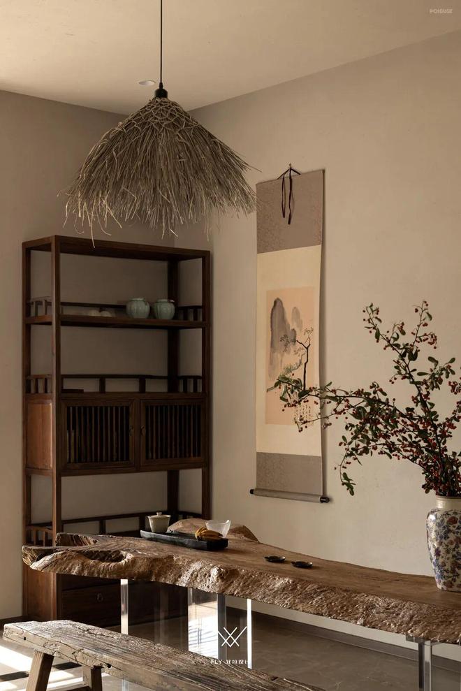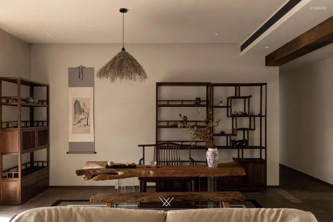 “喝茶”这件事儿,是刻在中国人DNA里的!喜爱阅读、字画、藏传佛教的杭州屋主,在客厅沙发后面专门留有一方品茗区,典雅自然的材质演绎出优雅的中式美学,一幅山水挂画点缀出隽秀的古典逸趣。