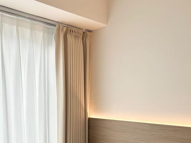 装修建议:智能窗帘需要提前预留窗帘盒,预留电源。而且要保证轨道宽度,单轨窗帘盒一般不少于15厘米,双轨要不小于25厘米。