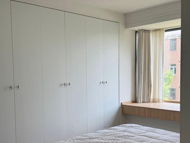 做法就是家里几乎所有的衣柜,橱柜,储物柜都做到顶,上部不留任何的空隙。如果高度过高,建议在门板的内侧加装拉直器,就可以防止变形。