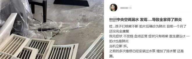 此时,再开上风扇,或者是说漏水后空调还能用的话,这些微生物直接会被吹到各个房间的各个角落,所以会影响家人的呼吸健康。