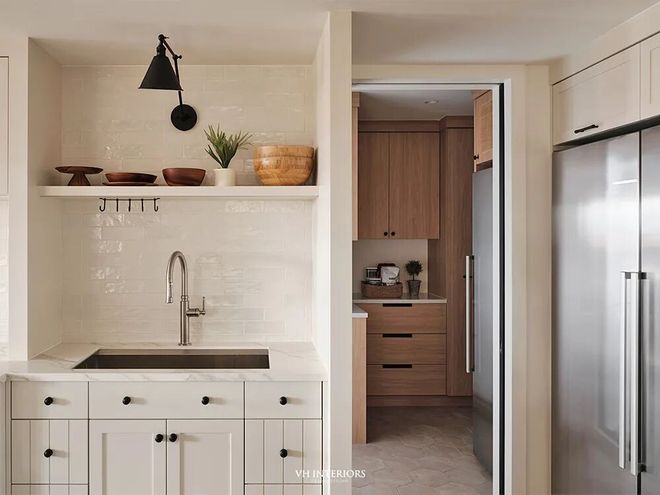 冰箱顺沿储物间,落置于侧,降低柜子突兀感