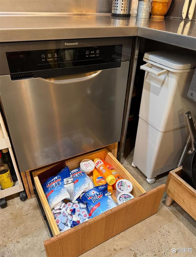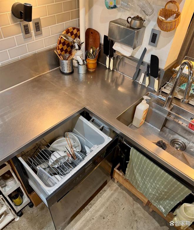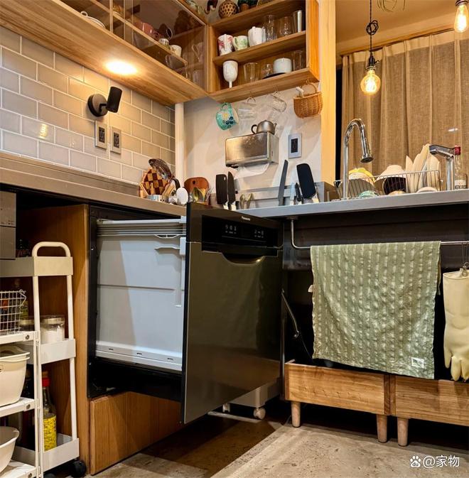 无论是选这种抽屉式的洗碗机消毒柜,还是下翻开门的抽屉洗碗机,其实都可以完美应用在这类无橱柜的厨房里,其实从站在橱柜台面前的视角来看,用起来并不会有丝毫区别或者不方便的地方。