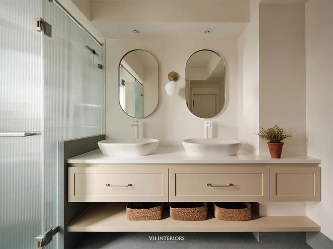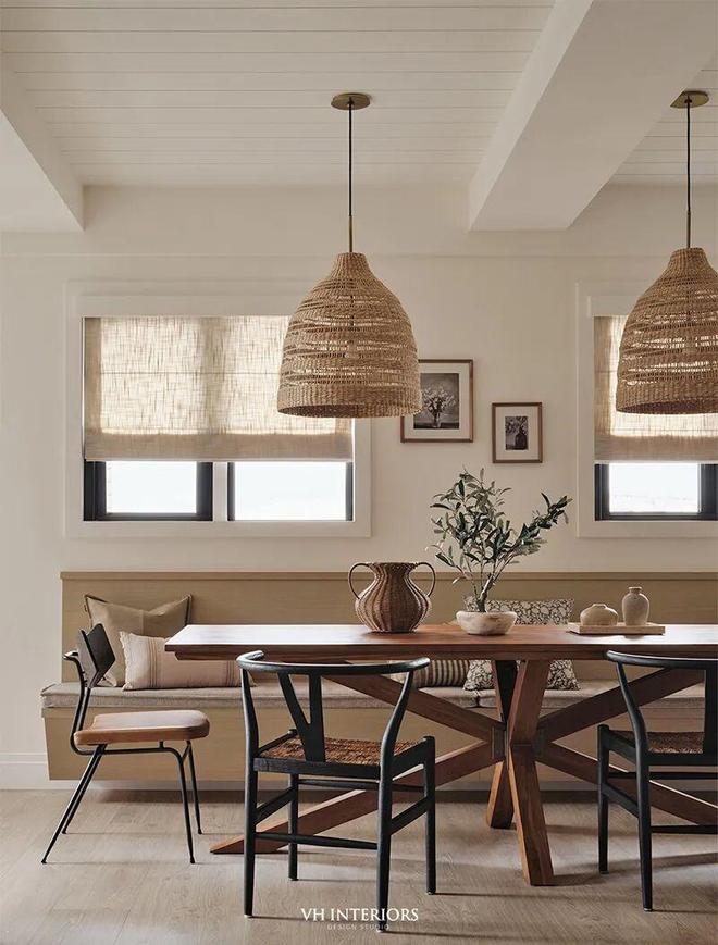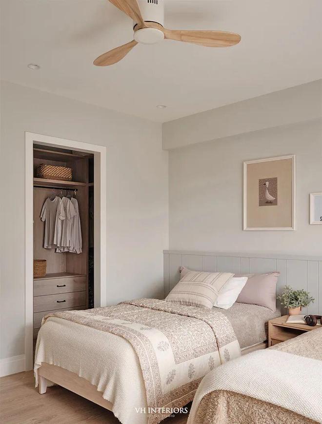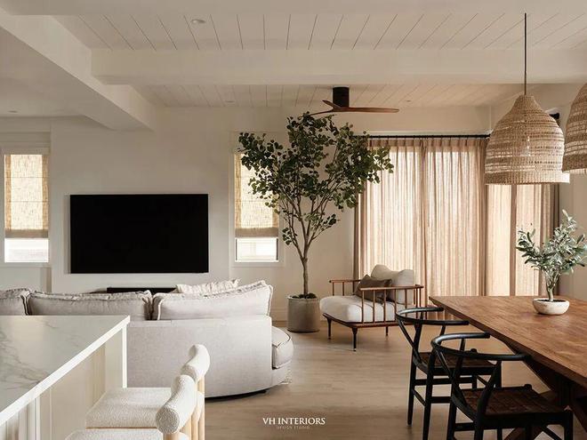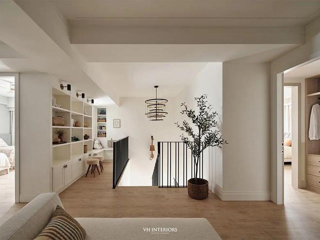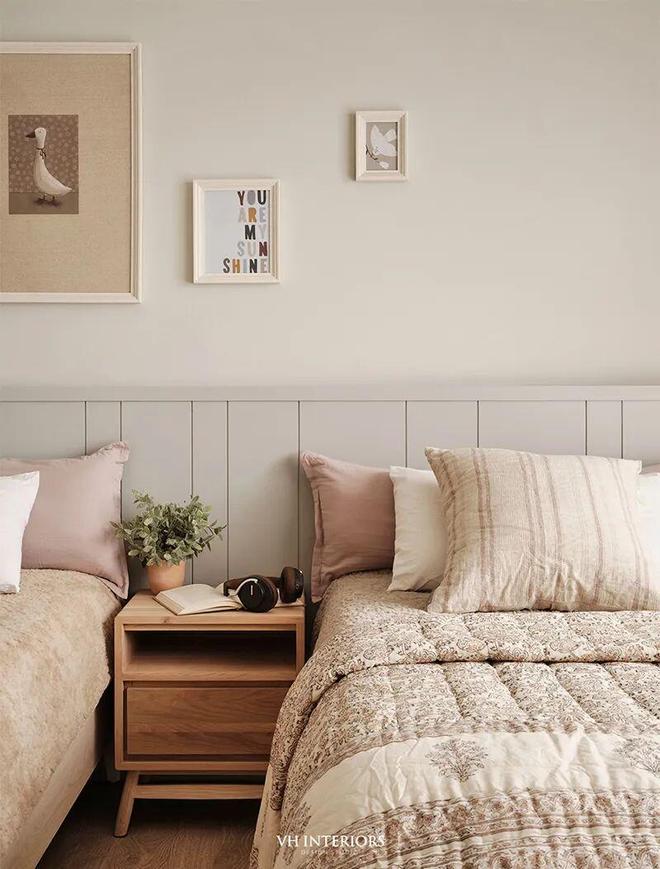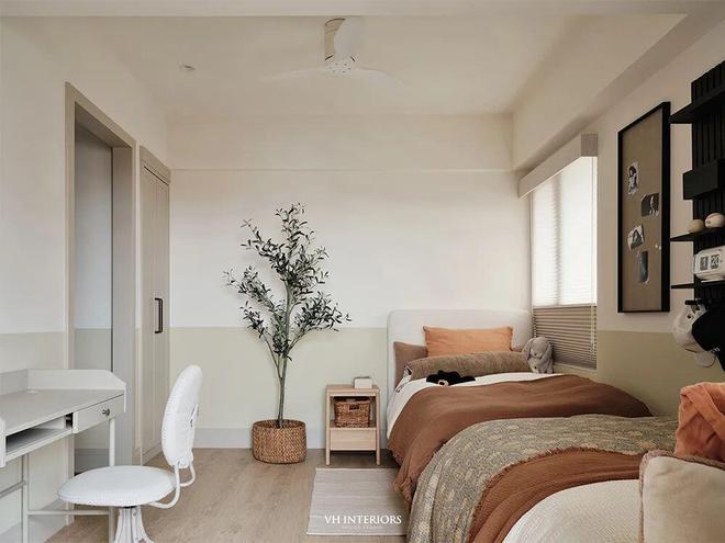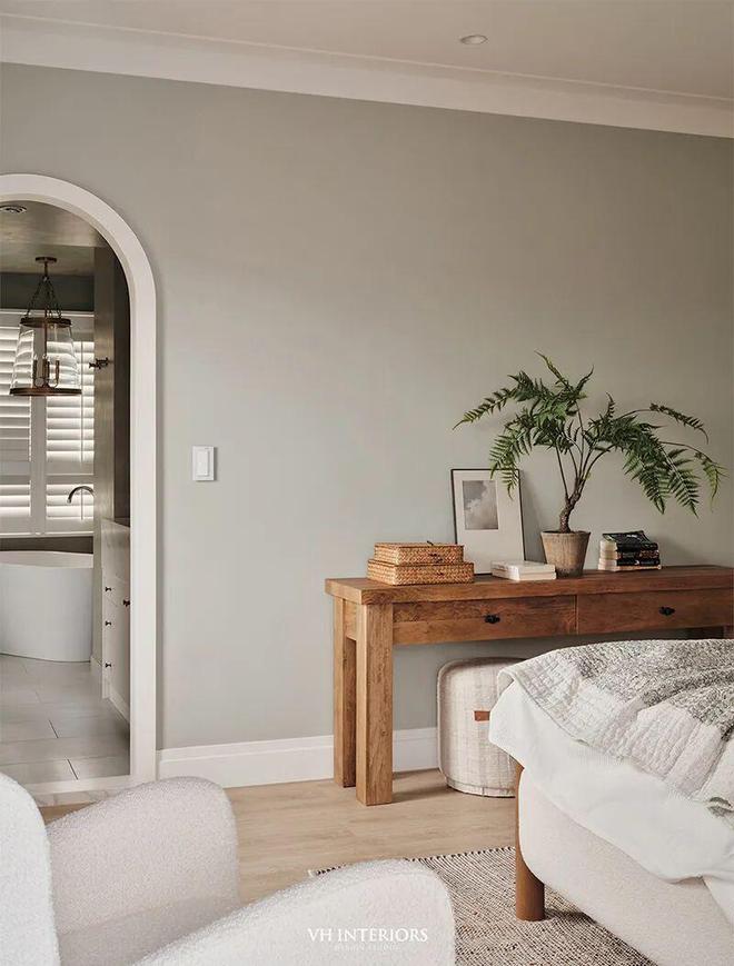 引入卧室,采用大地色调与绿系的跳色手法相衬