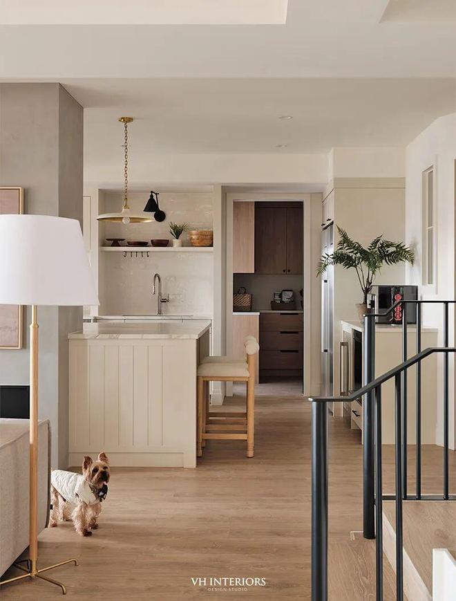 冰箱顺沿储物间,落置于侧,降低柜子突兀感