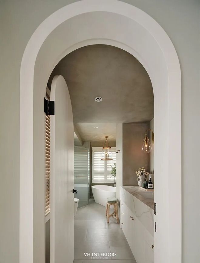 予以简约手法,降低柜体量,并拓开斜面门洞