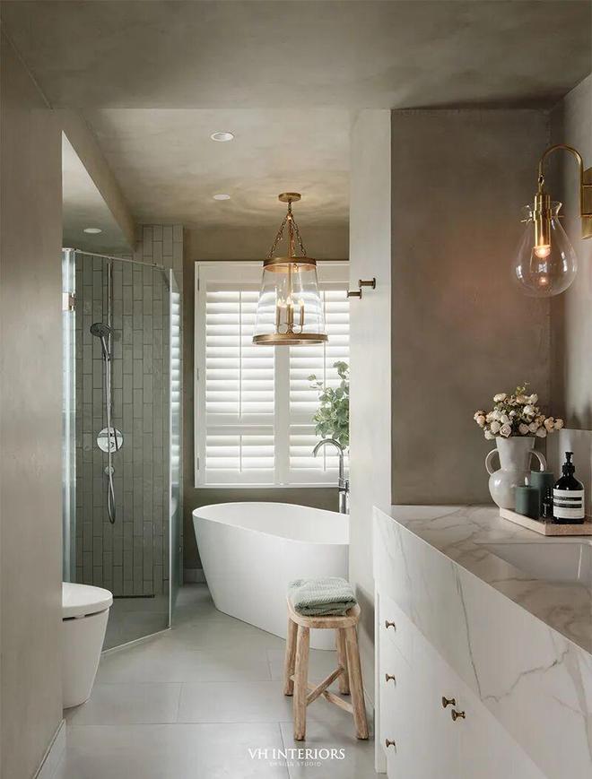 并铺叙橄榄绿磁砖,再放置一式独立浴缸