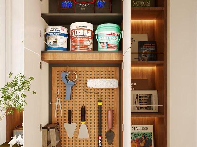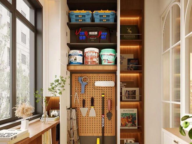 做法总结:清洁工具隐形收纳,让家显得更清爽更干净。而且洞洞板的布局灵活,所有工具一目了然,拿取也很方便。更加避免了工具的日晒雨淋,也会更耐用。