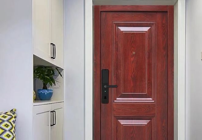 我家原来的入户门是开发商赠送的,也就是很多人所说的“猪肝红”入户门。可以说,与任何的室内装修风格都显得格格不入。