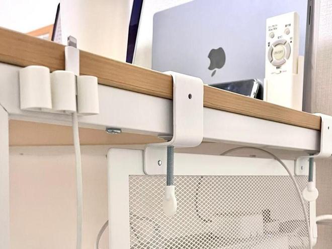 做法也不复杂,就是购买一个可以使用螺丝或者是纳米胶固定在桌面下面的插排收纳盒就可以了。