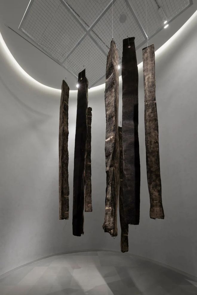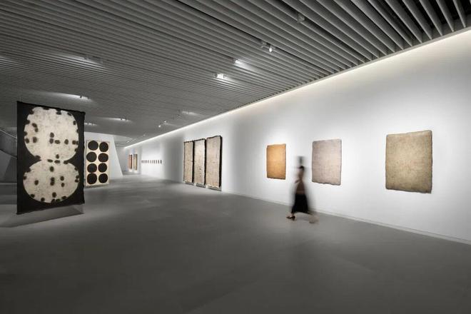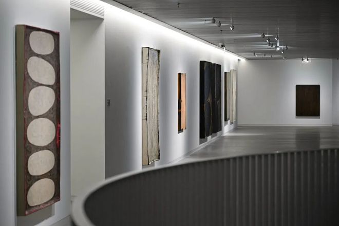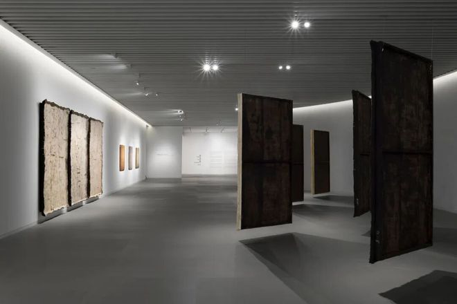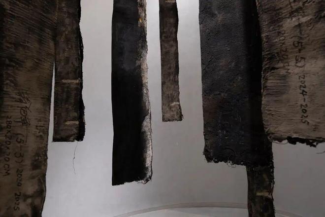 所以,由女儿兼策展人带来的更新和改动,首先就是对展览进行命名——同时也是一次对父亲作品细致的回顾性梳理。她的策展轴心围绕三组要素:物(大漆材料的物性)、迹(时间留下的痕迹)、维(空间与观看的维度)。“‘物·迹·维’是把观众带回作品本体:材料的物性、时间的痕迹、空间的维度。”