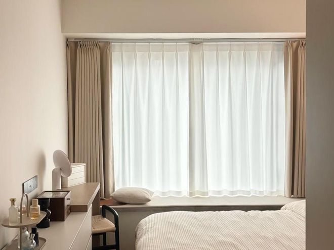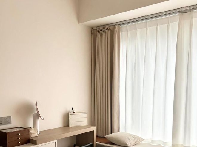装修建议:智能窗帘需要提前预留窗帘盒,预留电源。而且要保证轨道宽度,单轨窗帘盒一般不少于15厘米,双轨要不小于25厘米。