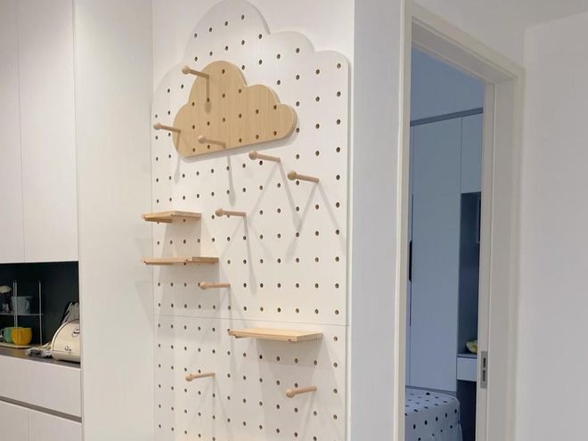 体验后你会发现,这种墙面挂钩灵活又多变,可以根据需要随时调整挂钩的位置,还有就是数量。很大程度释放出了地面台面的空间,让小物件也有了归处。