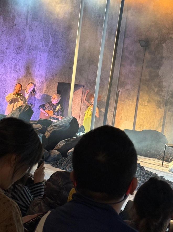《农庄馆客人》开演前,何炅和黄磊等6位演员提前上台进入角色。秋夜微凉,给观众发暖宝宝的工作人员示意大家安静下来。伴奏响起,被烟雾笼罩的剧场悄无声息,那是双向奔赴的等待呀~这场剧本围读形式的“神剧”,不是在这灰墙下,不是这群戏迷,就不是这场戏了。万幸没错过!