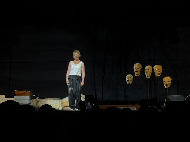 在长达9小时的“人类之城马拉松剧”五部曲里,偶尔困顿打瞌睡,也不影响记不住古希腊忒拜城邦神话里各种又长又雷同人名的我,在感官和内心触摸到有重量的“神性”,被演员的爆发力和极致情绪震撼到落泪、起鸡皮疙瘩,那种原始本能的毁灭与暴虐,悲剧内核的冲击力之巨大,会把人吸住。