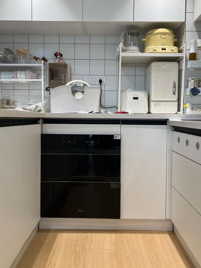 至于有娃家庭,真有需求就买个可移动小消毒柜就行了。以后等到孩子长大,还可以随时处理掉,完全不会占用橱柜空间。