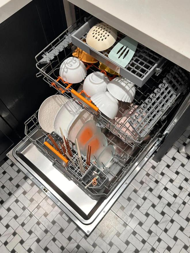 就拿碗柜功能来说,虽说兼具了餐具收纳功能,但每次清洗时,都要把干净的碗拿出来。当然,你也可以不拿,但会增加清洗时间、耗材,以及额外的水电,影响清洗效率。