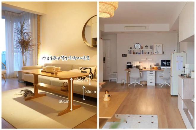 所以,他们就做了一个更大胆的决定,直接用“餐桌代替茶几”。