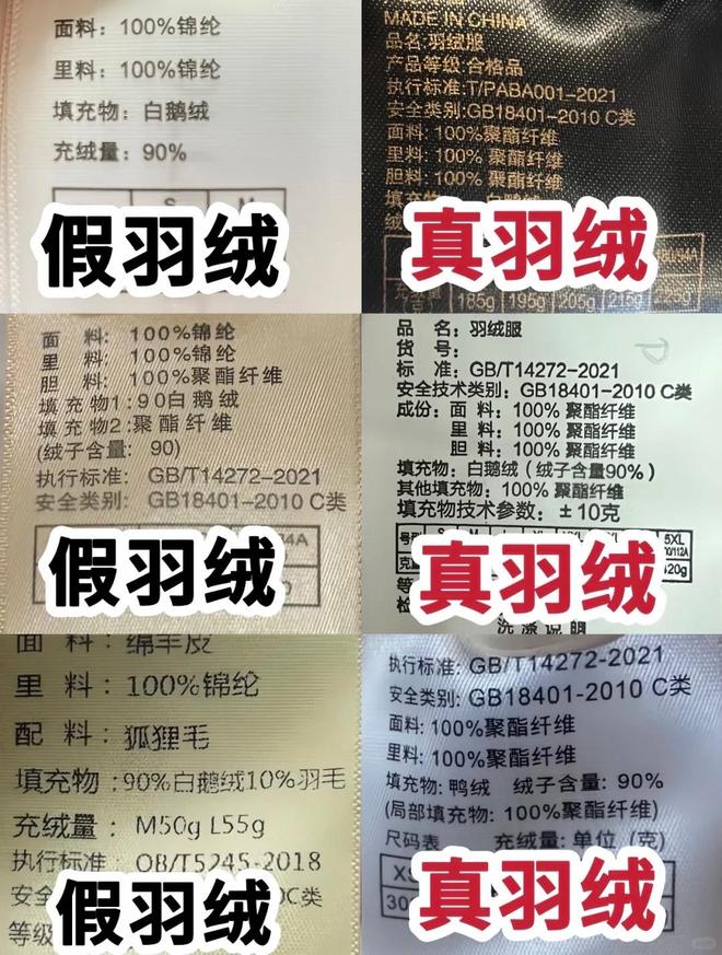 ——充绒量≥400g(中长款)、含绒量≥80%、执行标准GB/T 14272;价格离谱地低的,别点。