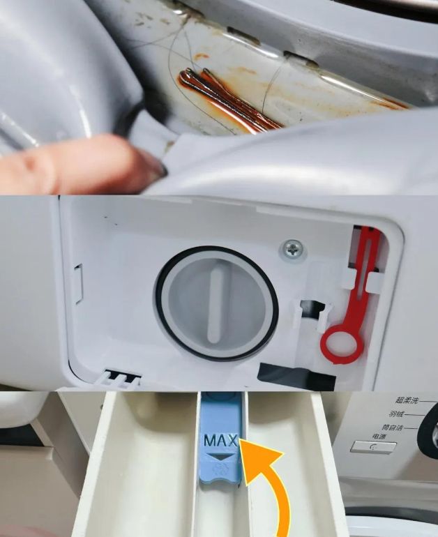 最后,筒自洁清洁的仅仅是洗衣机的内筒。除此以外的地方,都还是需要手动清洗。比较容易被忽略的卫生死角有三个: