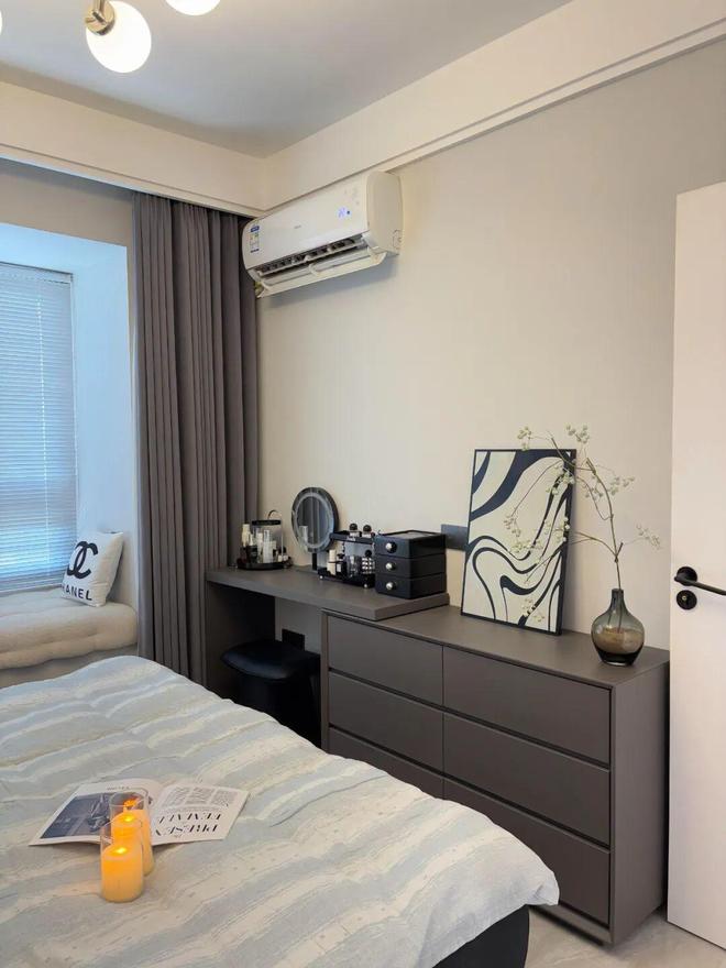这种更加简单的处理方式,可以最大化保留下空间的开阔性以及视觉层高。尤其在墙面做了调色处理的情况下,层次感更加鲜明。