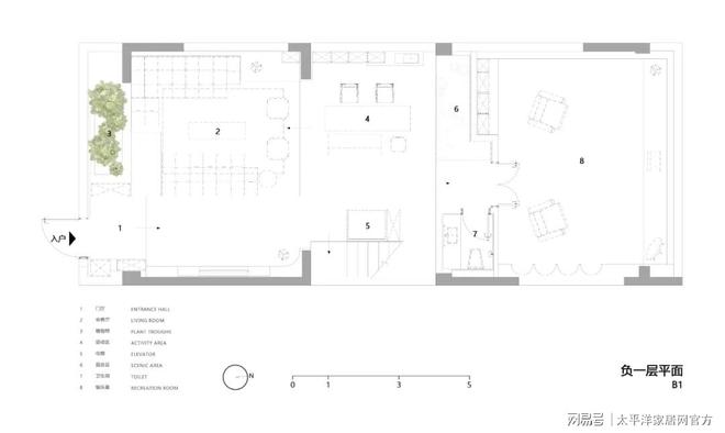 负一楼的空间处理上,保留了其 4.7 米层高的优势,仅选取三分之一的面积设置夹层,期望南侧采光井的光线能最大程度照亮整个负一层及夹层空间。