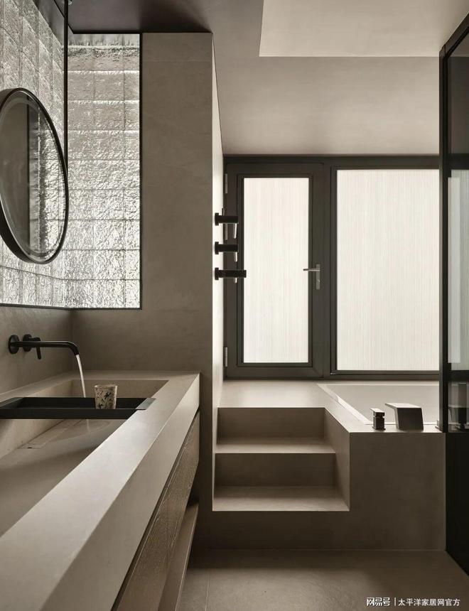 主卫与衣帽间之间的墙体采用水波纹玻璃砖分隔,在补充光线的同时增添生活趣味,让私密空间也充满灵动气息。