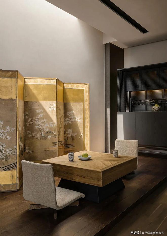 窗框线条轻盈地切割着四季光影,夕阳斜照时,木纹地面泛起温润的琥珀色,让休憩时光更显惬意。