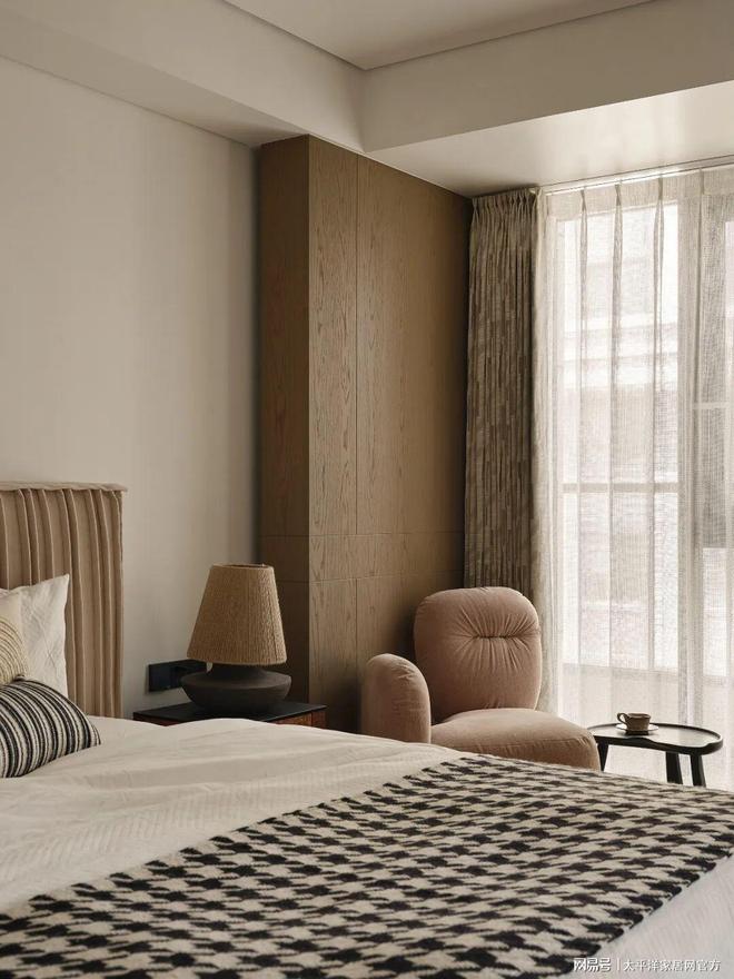 北侧卧室设计成独立套间,通过材质的留白过渡到静谧氛围,木饰面与木地板砖衔接自然,营造出温和而内敛的私密感。
