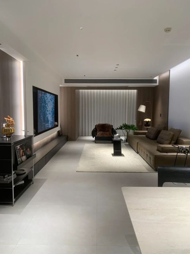 此外,“单眼皮吊顶”还可以在侧面内嵌线性灯,不仅光线更加高级,还可以为空间增添一抹“科技感”。