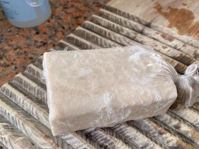 由于丝袜本身具有很密的网孔结构,所以肥皂放在里面是不会露出来。但是,它的通风排水效果却很好,肥皂很快就干了,而且更利于起沫,也更好用了。