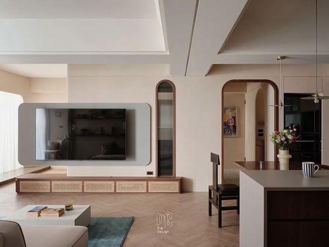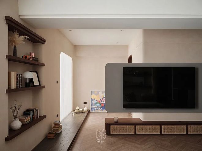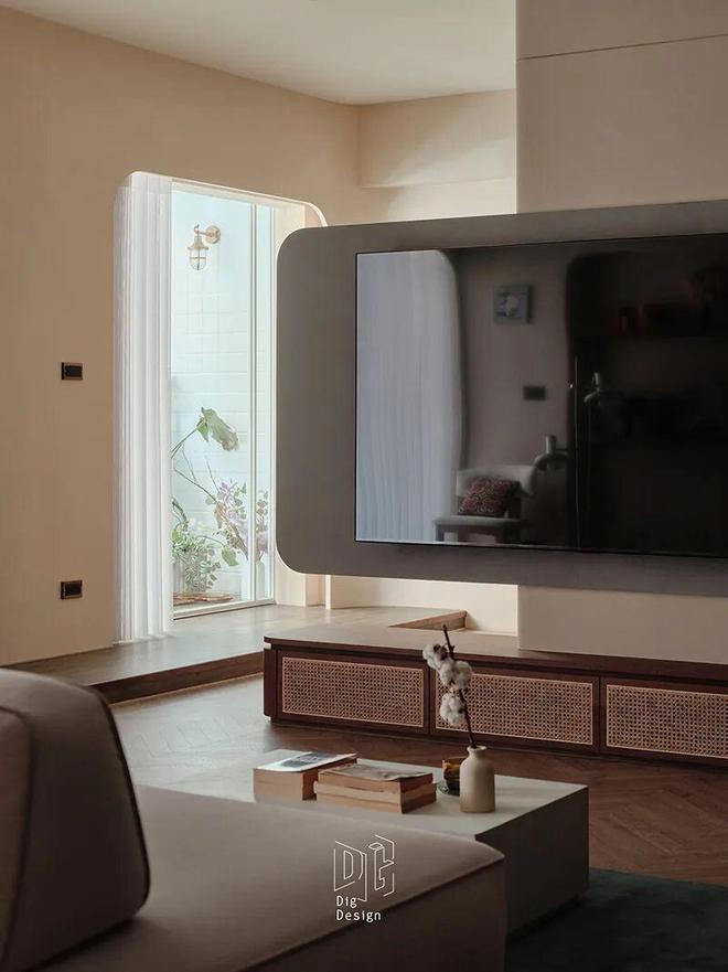 采取了浮空感的墙面设计,并在确认电视机尺寸之后