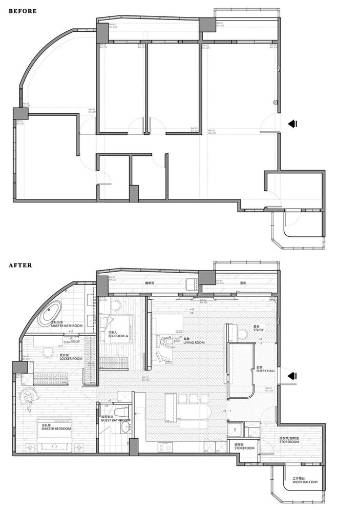 在筑起衣帽间之后,由外入内的视觉动线缩短了