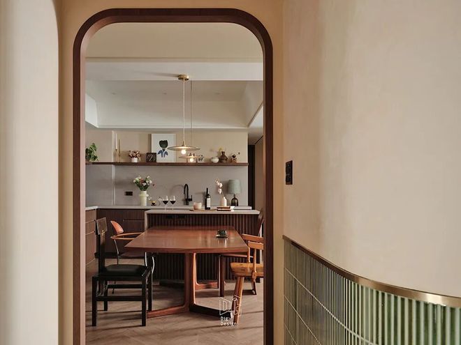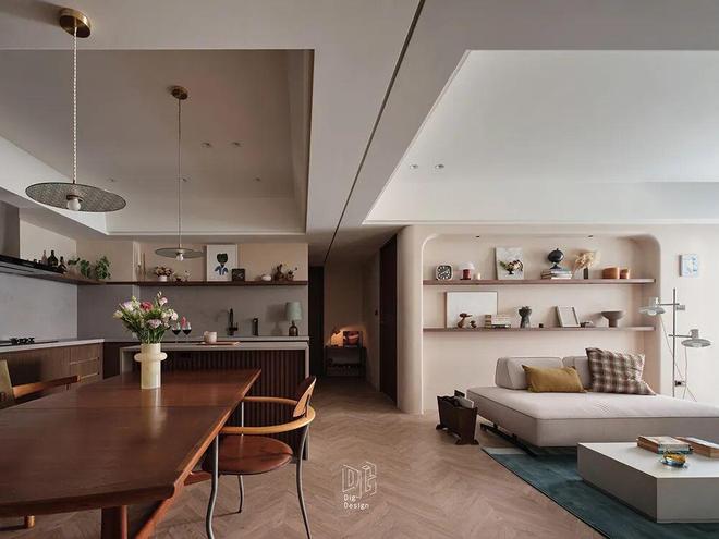 盼消弭内外之差,并循着鱼骨拼木地板入内