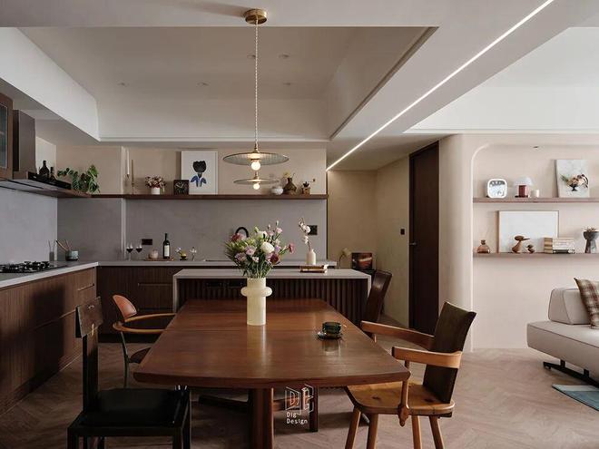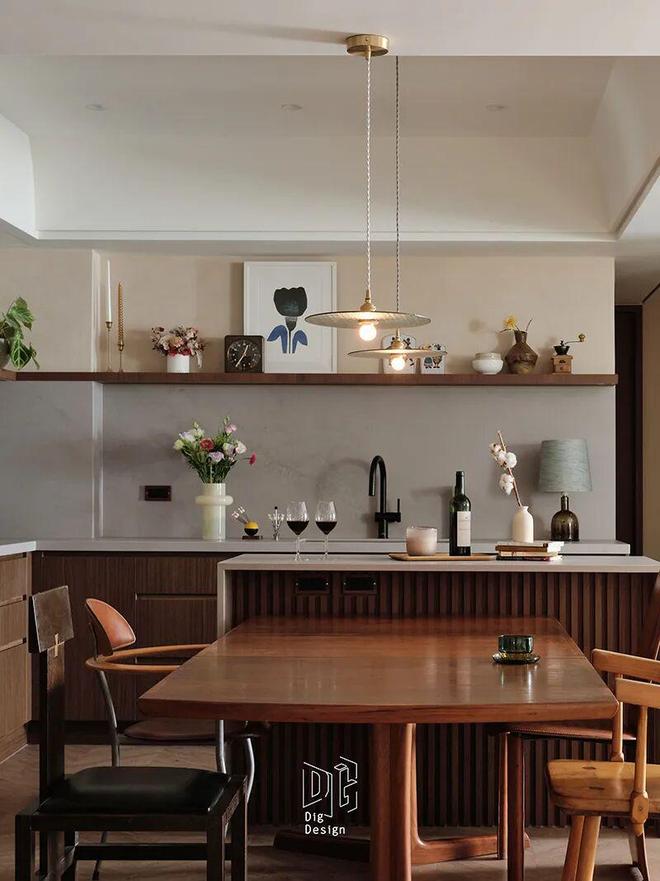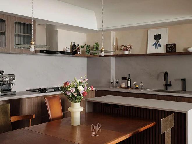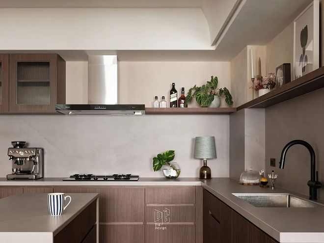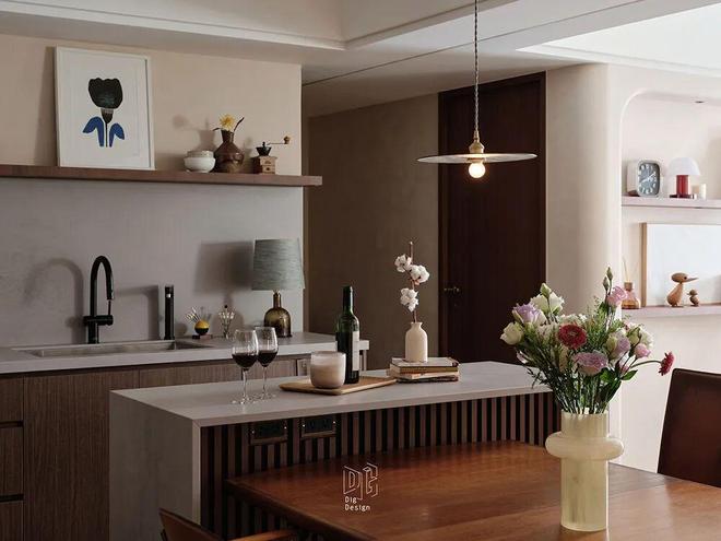 以特殊漆色,调和与厨房区的帝通石相同的灰底蕴