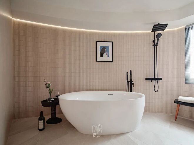 主浴落置於本案相当独特的的一道弧形墙之侧