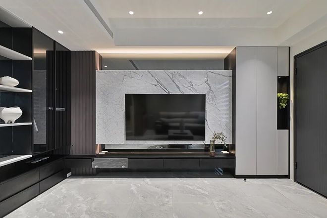 并与浅暖色蕴的沙发背墙,映衬了家的简约奢美