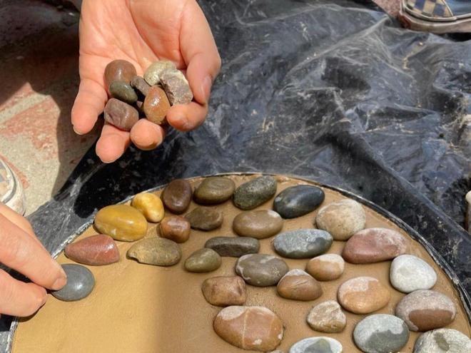 只需要挑几块表面相对平坦一些的鹅卵石,然后使用洗洁精彻底洗刷干净,尽量再用开水消毒以后晾干。