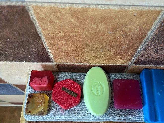 之后,将肥皂放在折叠好的毛巾上,就是一个肥皂垫。
