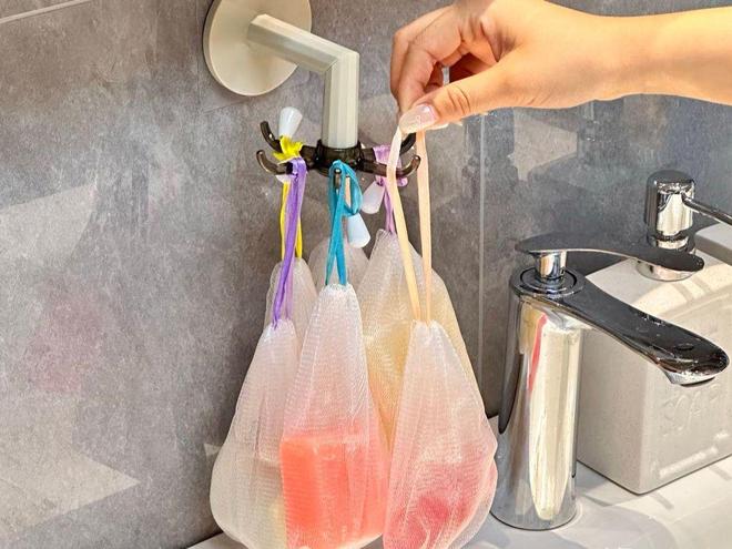 由于滤网的设计本身就是可以利于排水,效果真的远远好于肥皂盒。而且,挂起来悬空,让肥皂周围都能接触空气,干燥得很快。这种材质也不容易发霉,脏了换一个就行了,非常方便。