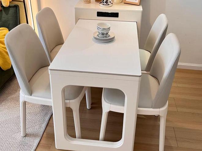 做法建议:伸缩式餐桌一定要选择高质量滑轨,确保长期使用不变形。展开以后,要看一下地面是否平整,避免桌子晃、卡顿等。