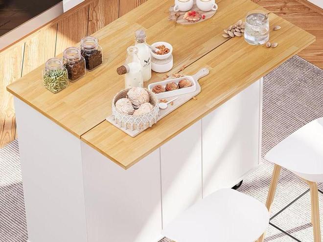 现在越来越多人做的另外一个收纳设计,就是移动式岛台,可以说是小户型的救星。
