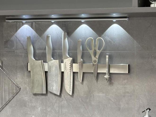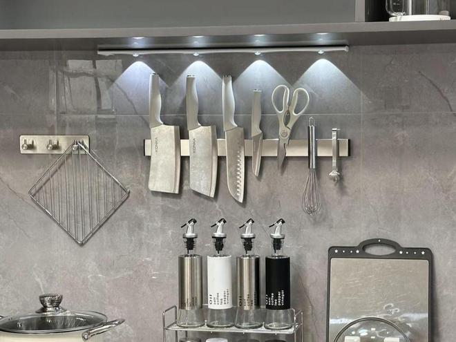 对于厨房的刀具,现在越来越多人选择磁吸式上墙收纳。