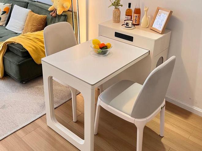 做法建议:伸缩式餐桌一定要选择高质量滑轨,确保长期使用不变形。展开以后,要看一下地面是否平整,避免桌子晃、卡顿等。