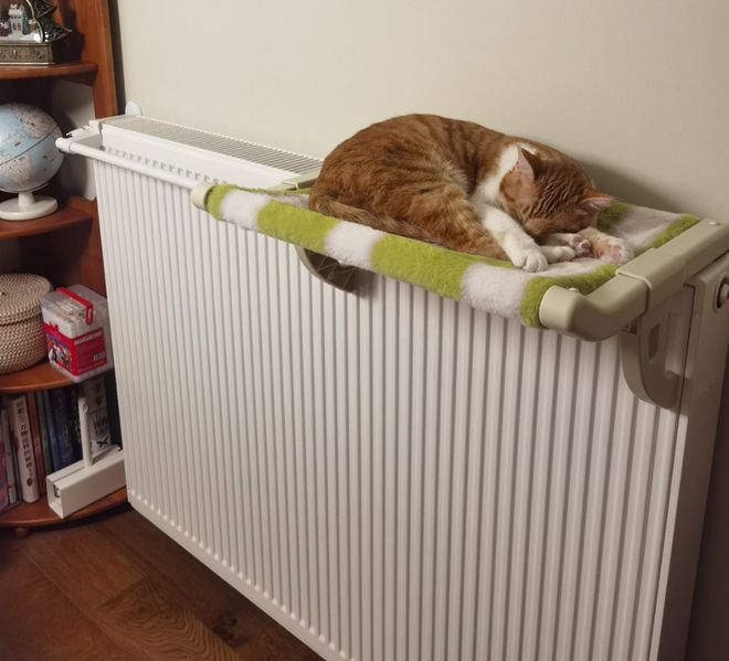 除了我以外,家里的小猫小狗也是对暖气片情有独钟,冬天的时候特意在上面安装了个支架式猫窝,小猫每天都会在旁边贴着,有时候甚至能在上面窝着睡上一整天,那场面,只是看着都觉得很温馨。