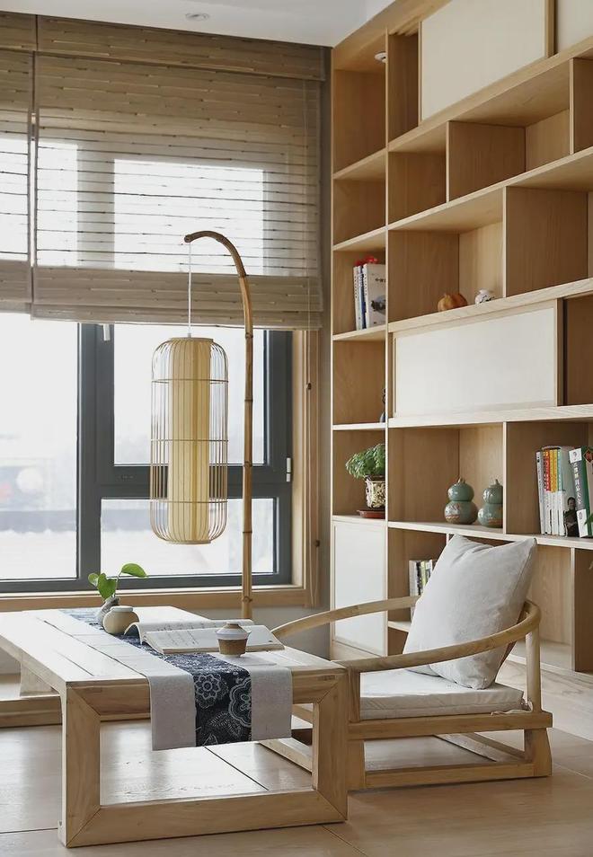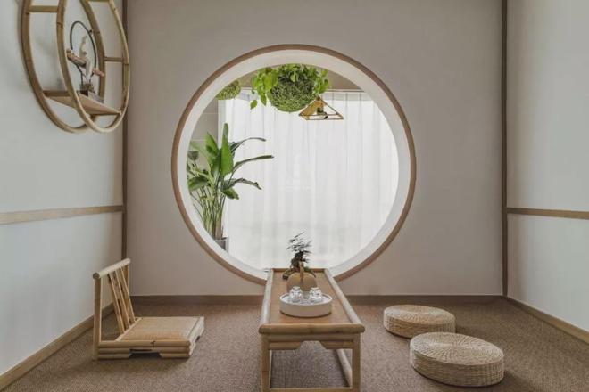 而在榻榻米之上,有中式和日式的两种风格的茶室家具供你选择。中式则是木或竹,日式则是蒲团或者软垫,非常惬意。