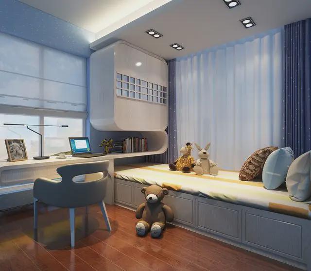 同时为了小孩子们的安全起见,所有的书桌柜子等有棱角的物体,都可以提前打磨做成圆角的设计。